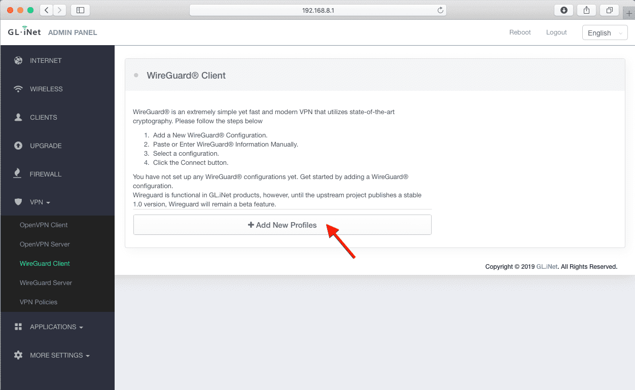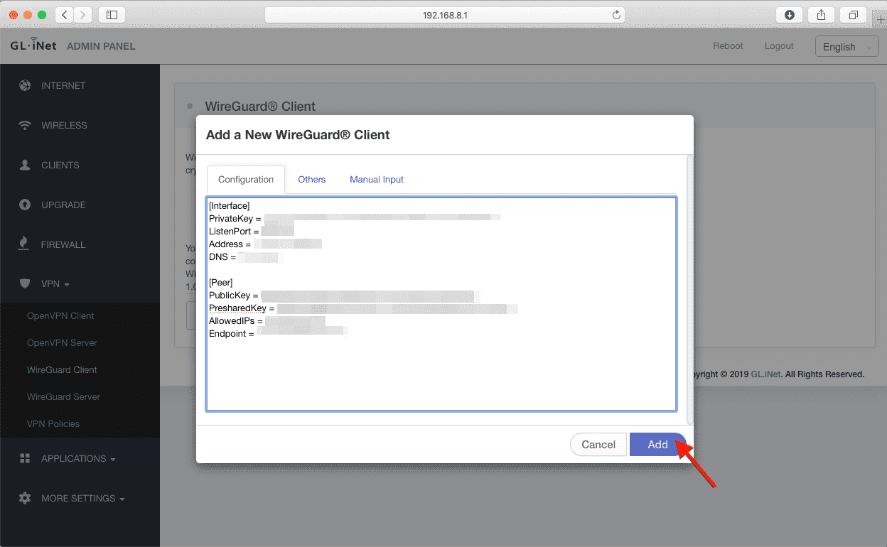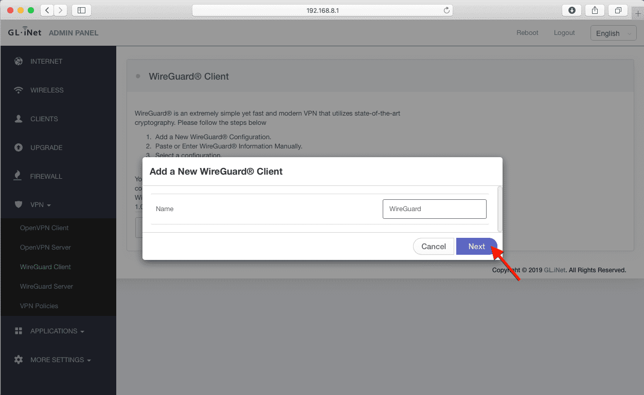 2. Configurar o cliente WireGuard no roteador GLiNet