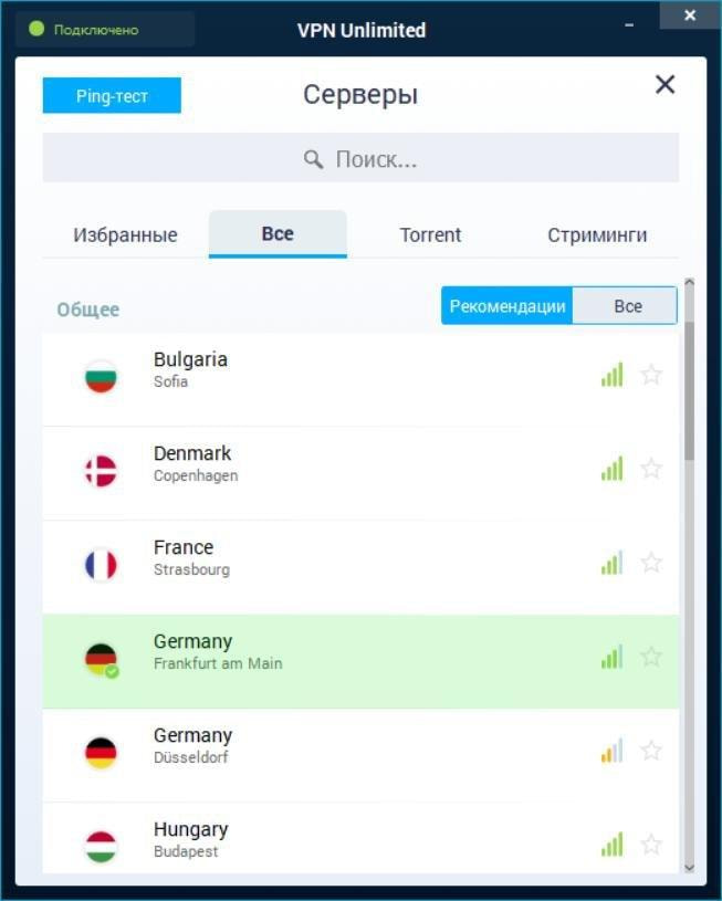 - Все: На этой вкладке вы можете посмотреть полный список доступных VPN серверов и их местоположений.